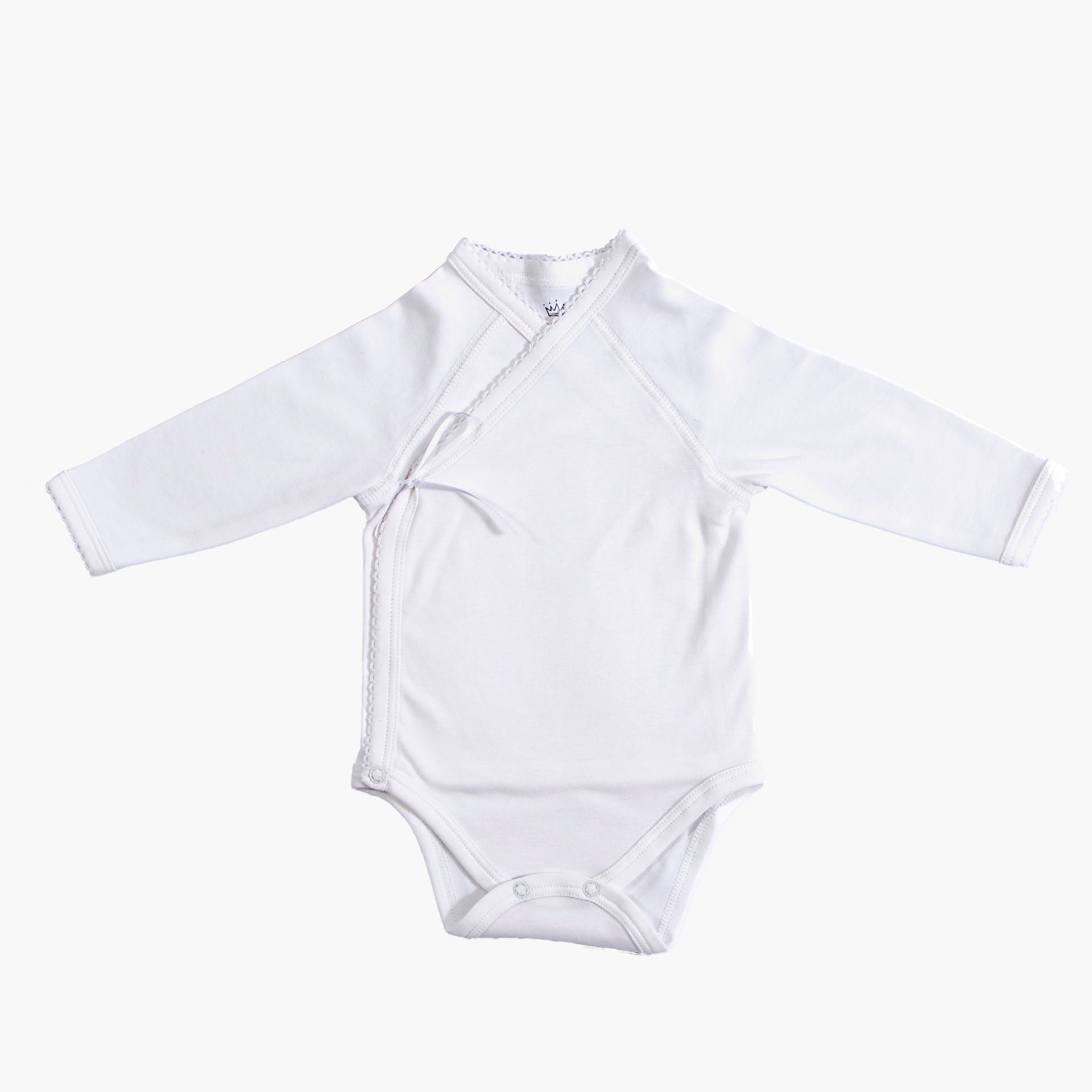 Body kimono blanco manga larga 100% Algodón Pima con picueta y cinta blanca