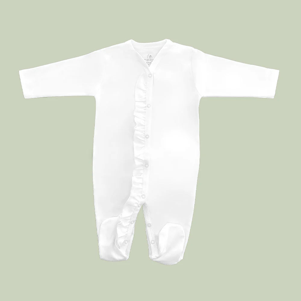 Enterito 100% algodón pima con un detalle de vuelos precioso a lo largo de los broches.