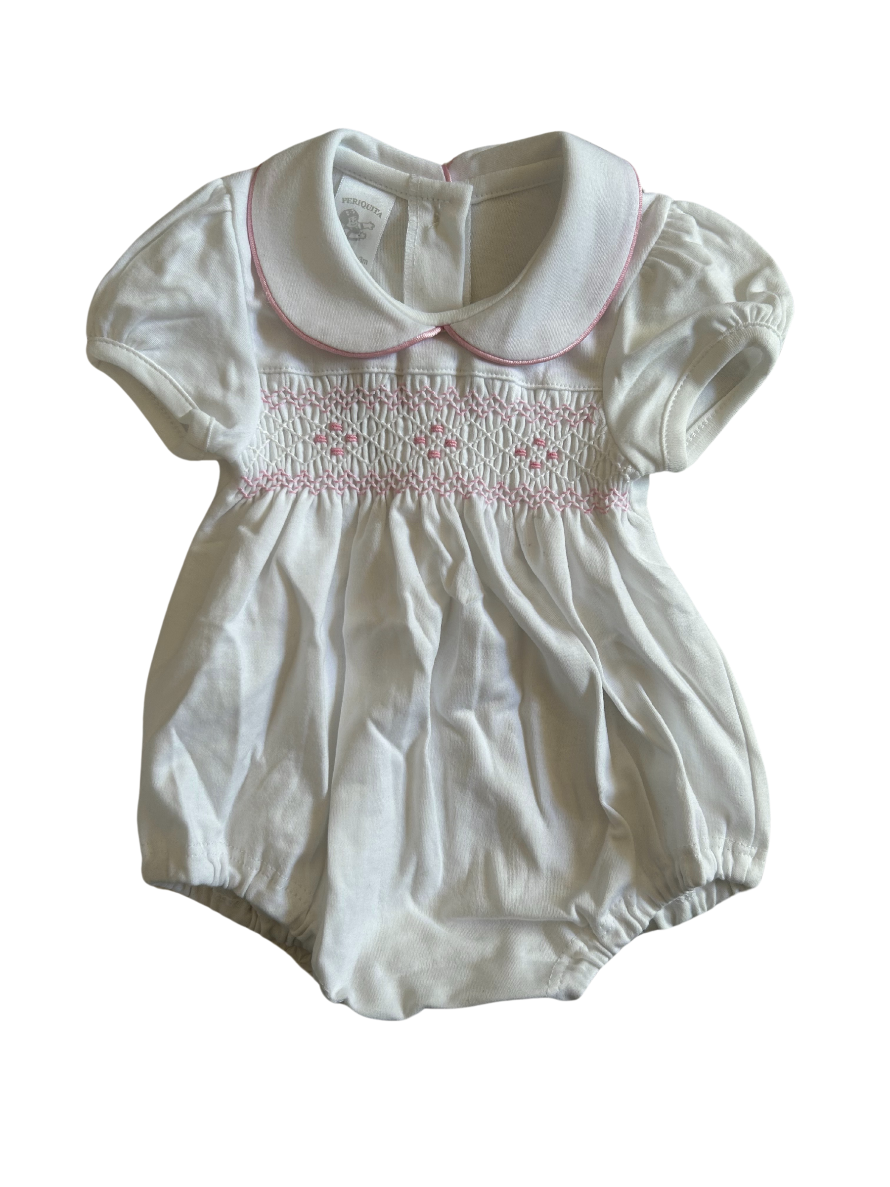 Enterito corto bordado a mano rosado